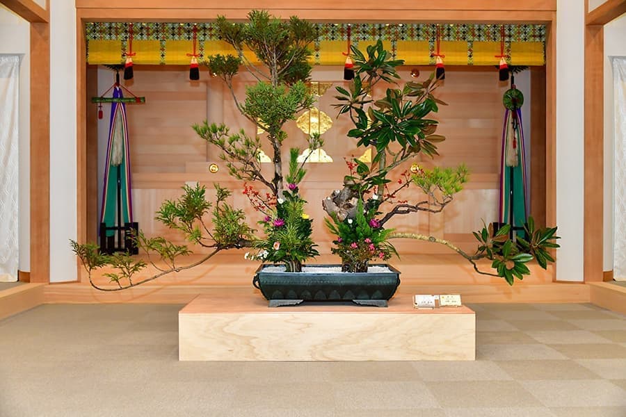 奉祝行事として「祖霊社創始百五十年記念奉納花展」が開催され、護神庭・斎殿・客殿には約百瓶の「いけばな」が並び、御参拝の方々に新しくなった祖霊社とあわせてご覧いただきました。